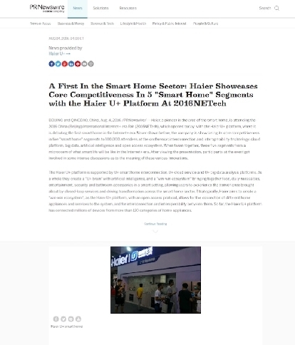 攜五大競爭力閃耀NETech 海爾U+智慧家庭折服外媒