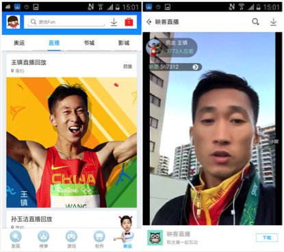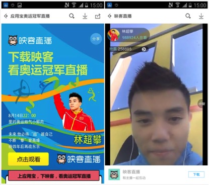 據了解,騰訊應用寶在奧運期間正式推出“奧運直播”版塊,聯合映客同步連線里約奧運健兒,此次也是應用寶在“直達式分發”上的大膽嘗試,將直播APP內的實時視頻直播內容前置于應用寶客戶端,讓用戶通過應用寶可以一站式體驗更豐富的移動互聯網內容與服務。