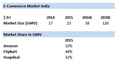 當前,印度電商的市場規(guī)模約為380億美元,預計到2020年增長到1200億美元。全國擁有2200萬網購消費人群,人均網購花費名列世界第十,在巴西和俄羅斯之前。印度市場看上去就是一塊肥美的肉,如狼似虎的國際電商都虎視眈眈,但是由于印度政府長期以來對本國電商市場奉行保護主義政策,外資電商一直被束縛著手腳,對這塊肥肉只能眼睜睜的看著卻無處下口。哪怕是強如亞馬遜,在印度市場的占有率也只能被有天然優(yōu)勢的Flipkart和Snapdeal這兩個地頭蛇牢牢壓制。