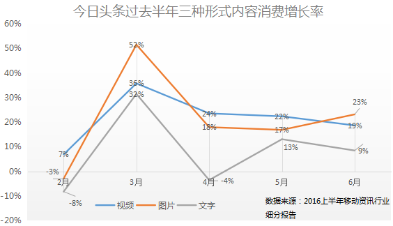 (在上半年的大部分時段,頭條平臺上的視頻增量最為明顯)