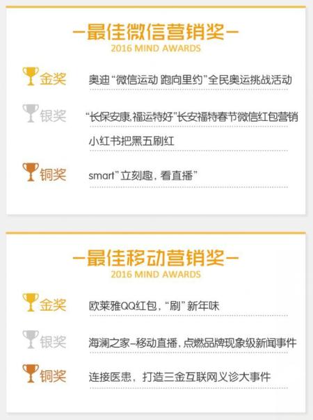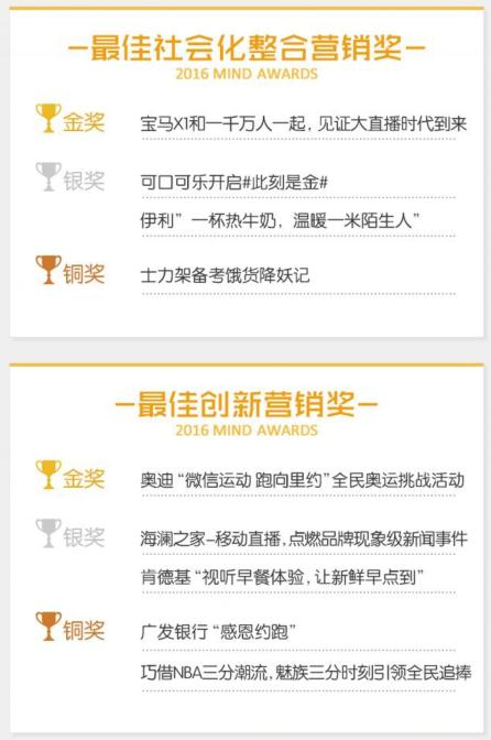 11月1日,2016騰訊MINDAWARDS揭曉了各獎項的最終歸屬。本屆MINDAWARDS從案例征集到最終評審前后歷時近3個月,22位來自跨國品牌及全...