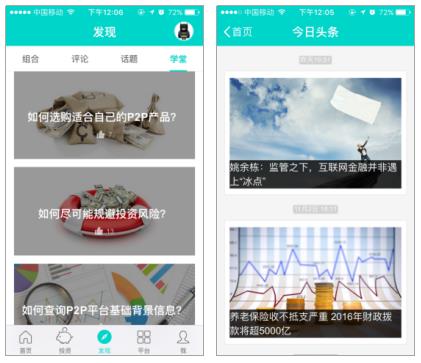 對于P2P理財的相關知識,投資者可以參考風車理財APP中“風車學堂”版塊的內容進行學習和快速了解。政策法規方面也可以參考風車理財“今日頭條”的內容,每當行業里有新的措施出臺,“今日頭條”版塊都會在第一時間進行推送,并挑選優質的專家解讀為投資者提供參考。