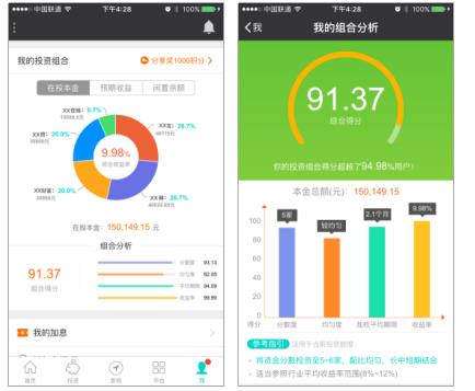 目前風車理財的大量用戶都采取了跨平臺分散投資的方式,在FRAS風險評估體系過濾的基礎上,建立了自己的投資組合,并享受風車理財所提供的組合分析服務。用戶在投資后,可以直觀的看到自己的資產在上述維度上的分數,還可以獲得針對性的參考指引,優化自身的投資組合結構。
