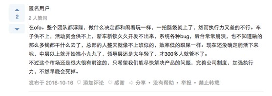 而在知乎上,在問題“在ofo或摩拜單車工作,是怎樣的體驗(yàn)?”,有匿名網(wǎng)友的回答,很耐人尋味。