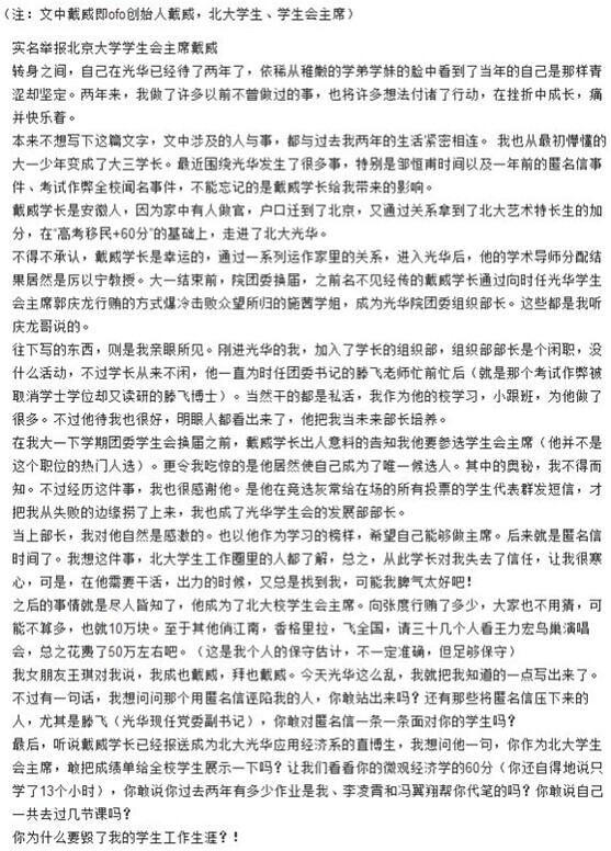 其實(shí)就在幾年前,戴威的不利傳言因鄒恒甫事件就傳播甚廣,戴威本人除了校園政治能力外,其學(xué)業(yè)成績和為人處事都有不少可議之處。
