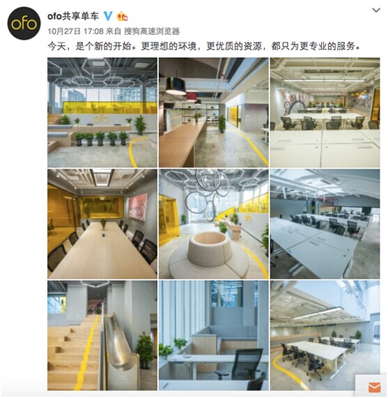 如此大規(guī)模的資金涌入后,OFO團(tuán)隊到底還剩多少話語權(quán)?近日,OFO在其官方微博上公開了新辦公室的照片。