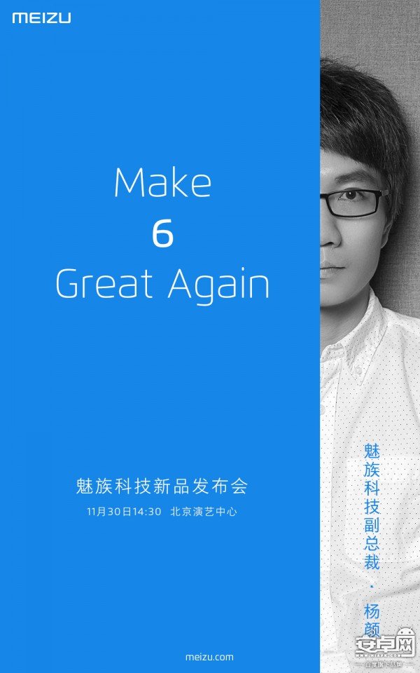 魅族已經定于11月30日在北京舉辦新品發布會,確認發布魅藍X新品以及全新系統Flyme 6。在曝光的預告海報中,Flyme總設計師楊顏出境,看來30號的發布會依然由他主講。宣傳口號是“Make 6 Great Again”,和之前的“Make Helio Great Again”相呼應。此前,Flyme官方微博表示,Flyme 6不僅要在視覺、交互、功能以及性能上都有更大的提升,還要讓更多人用上如此優秀的系統。