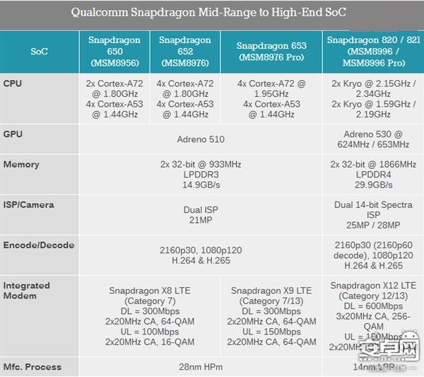 從現有的規律看來,定位中端的驍龍處理器在架構上不會有太大改變,依然采用提頻的方法來首提升頻率,小幅提升性能。例如,最近的驍龍625和即將發布的626,沒有改變CPU架構僅提升了主頻,而驍龍653和驍龍652的情況也一樣。