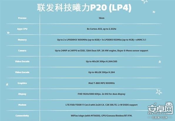 驍龍427:代號MSM8920,4*A53,主頻為1.4Ghz,Adreno 308圖形處理器,LPDDR3內存,基帶從X6升級到X9,從150Mbps/75Mbps提升到300Mbps/150Mbps,當然,也新增支持雙攝,支持QC3.0快充。