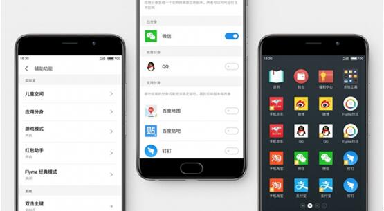 由于工作和生活的需要,很多用戶都擁有兩個微信號或者QQ號,一個用于私人生活,一個用于工作。但苦于無法在同一臺手機上同時登錄兩個賬號,當需要用到第二個賬號時,只能退出當前賬號登錄另一賬號,即使部分應用有切換帳號功能,操作起來也十分不便。在最新Flyme 6體驗版中,用戶只需在「設置—輔助功能—應用分身」中打開需要分身的第三方應用,返回桌面即可看到分身應用的圖標,操作起來十分方便。