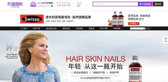 在收獲了2015年中國區(qū)銷售額迅猛增長的喜訊之后,Swisse于2016年3月正式開出天貓國際官方海外旗艦店。開業(yè)一周年之際,Swisse天貓國際海外旗艦店銷售額過億,成為天貓國際保健行業(yè)唯一破億的單品牌旗艦店。