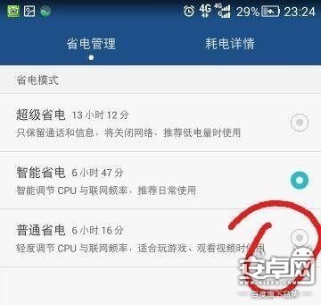 我們的手機的系統(tǒng)默認設置一般都是只能省電,這樣手機的CPU不能專心于運行王者榮耀。因此我們把設置改為普通省電模式,會好很多。