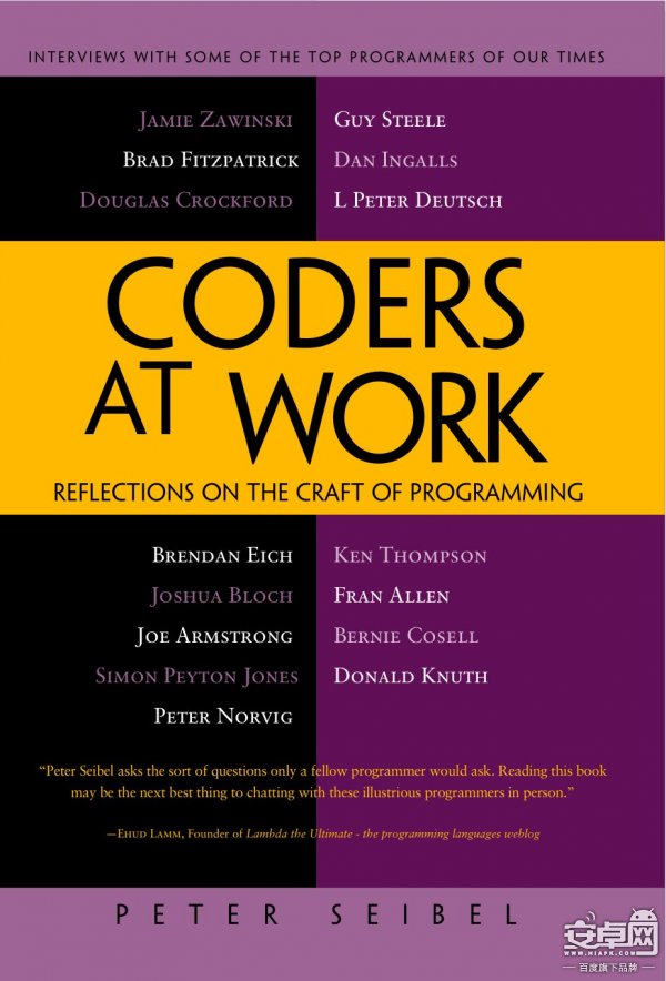 就像書名所標榜的,它通過采訪一系列編程“大家”,像 Donald Knuth、Ken Thompson、Jamie Zawinski、Guy Steele、Peter Norvig 等,討論這些“大家”的編程成長史。他們的那些回憶對于正在進階中的 coder 來說是無比珍貴的財富,我覺得