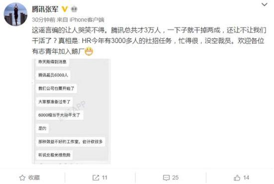 關于騰訊裁員的流言也貫穿了整個9月。9月初,曾有傳聞稱騰訊將裁員6000人,騰訊公關總監(jiān)張軍辟謠稱:“HR今年有3000多人的社招任務,忙得很,沒空裁員。歡迎各位有志青年加入鵝廠”。