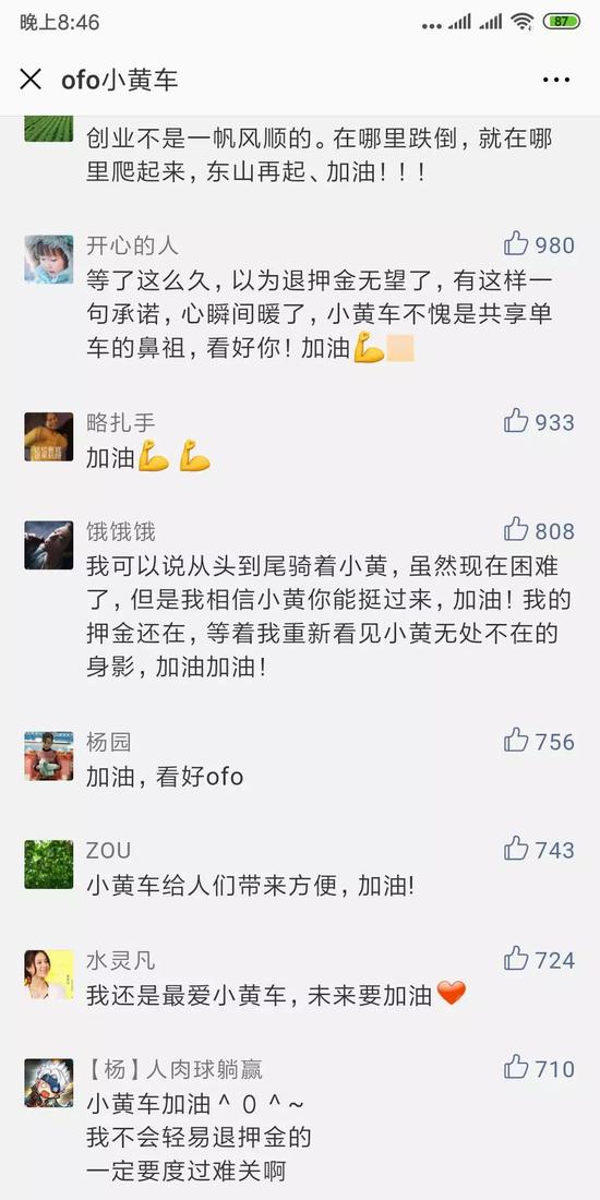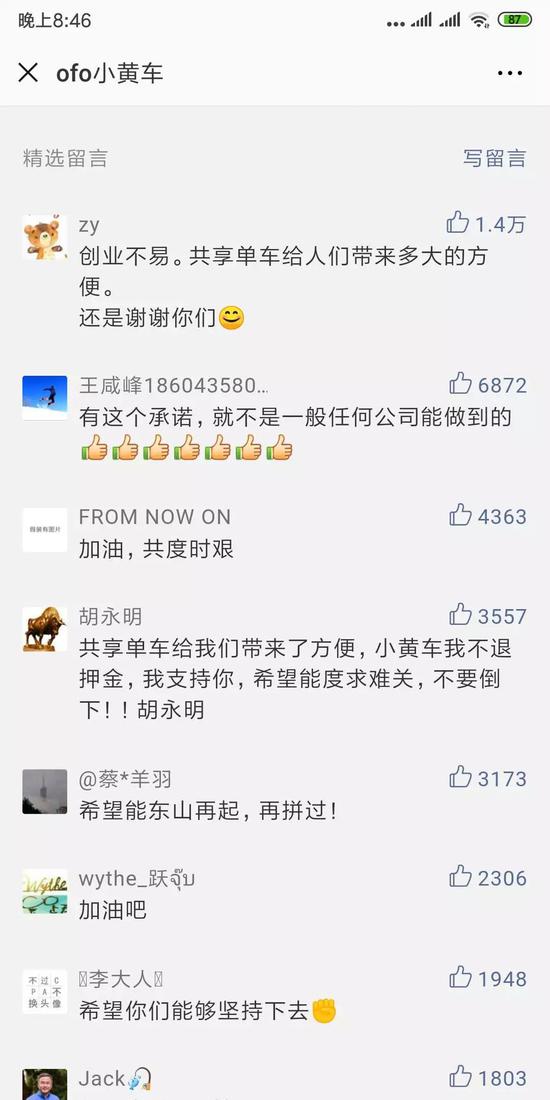 評論區內的留言也是溢美之詞,極盡贊美之詞,紛紛稱贊ofo的政策。