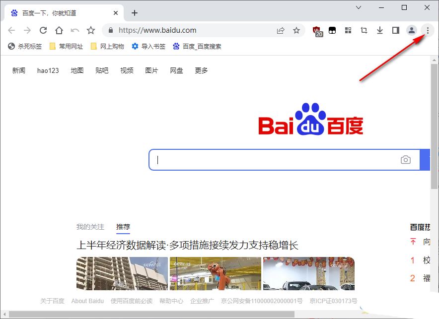 1、我們在電腦中打開百分瀏覽器,然后在瀏覽器頁面右上角打開三個豎點圖標