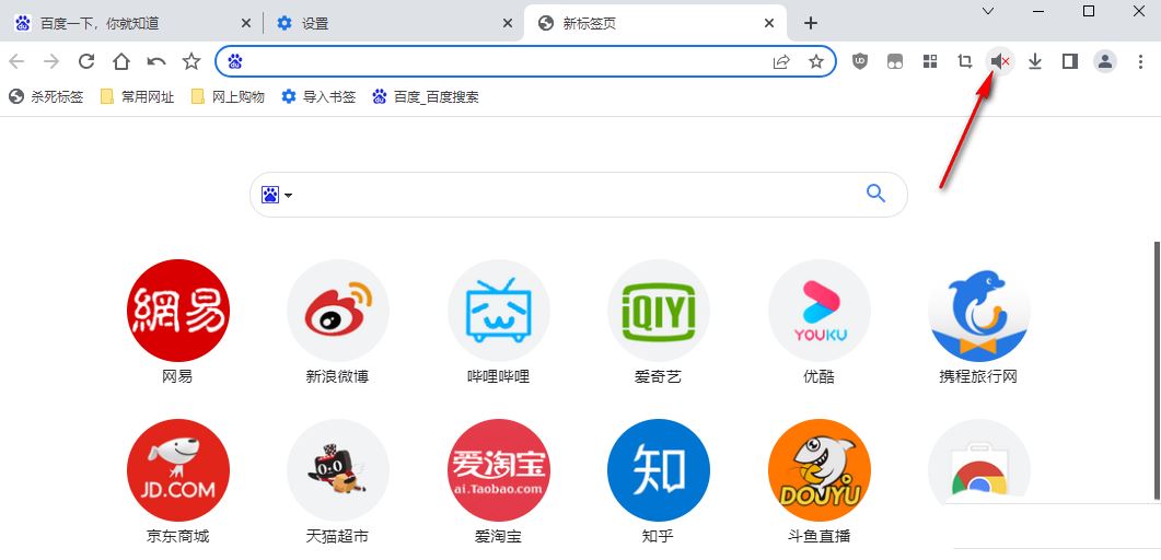 5、打開“顯示瀏覽器靜音按鈕”選項的開關按鈕之后,我們在打開有聲音的網頁或是標簽頁之前在工具欄中點擊喇叭圖標,將其切換為靜音狀態即可,我們也可以使用快捷鍵“Alt+shift+M”鍵進行靜音和接觸靜音兩種狀態的切換