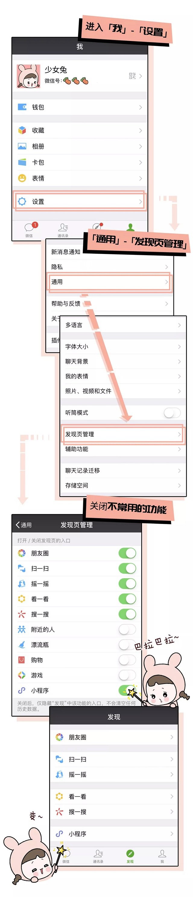 如果覺得“發現”頁面功能太臃腫,看起來不簡潔的話,我們還可以對發現進行瘦身,具體操作如下。