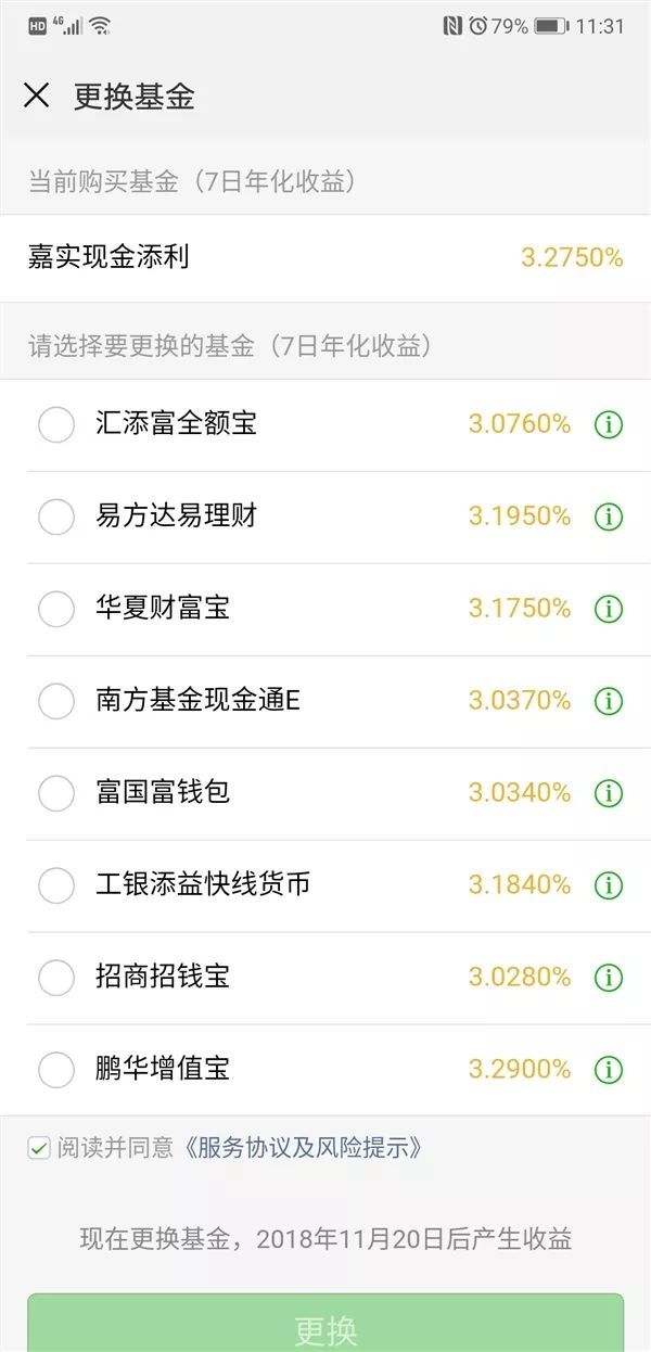 除了嘉實(shí)現(xiàn)金添利基金外,用戶可選擇匯添福全額寶、易方達(dá)易理財(cái)?shù)劝朔N基金,且7日年化收益率均在3%以上。
