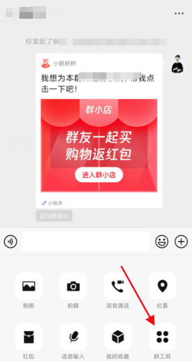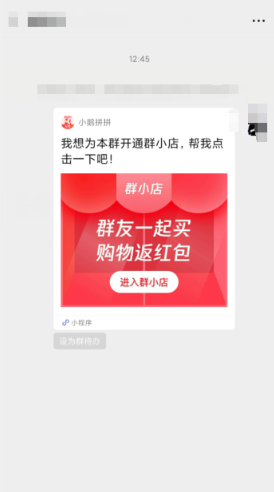 分享到群聊之后,群友點擊鏈接即可開通群小店。