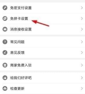 2、在設(shè)置頁面里點擊“免拼卡設(shè)置”。