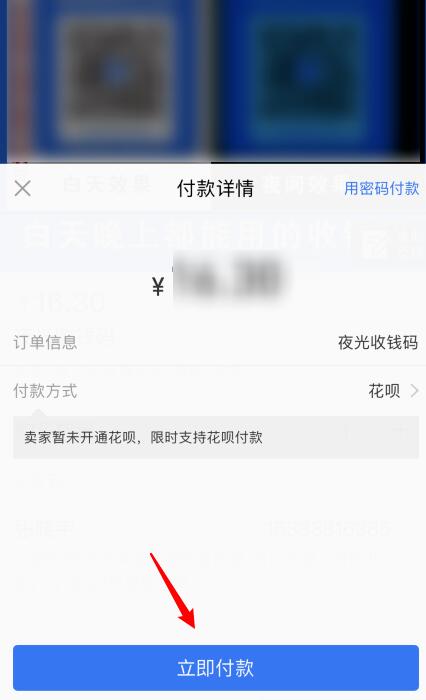 點(diǎn)擊后,選擇下方的立即支付,即可申請夜光收款碼。