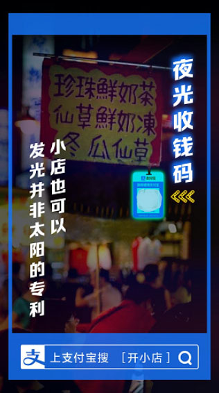 支付寶上線的新款收錢碼,對于晚上開店或擺攤的朋友來說是很便利的,白天晚上均可使用,白天效果跟平常使用的是一樣的,到了夜間就會(huì)發(fā)光,越黑光越亮;晚上掃碼也更加醒目容易識別出來。