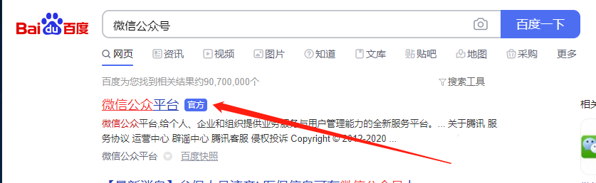 1、進入百度,在百度搜索欄中搜索【微信公眾號】