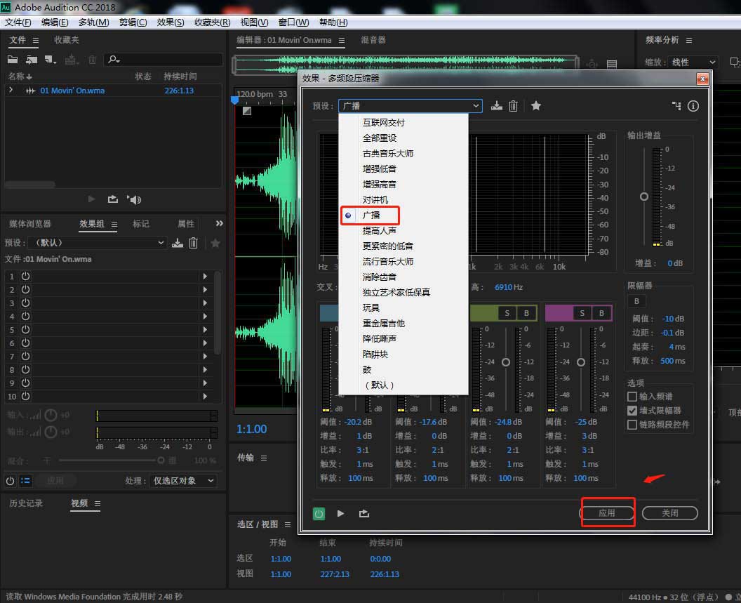 AU音頻剪輯設置廣播多頻段壓縮效果的方法