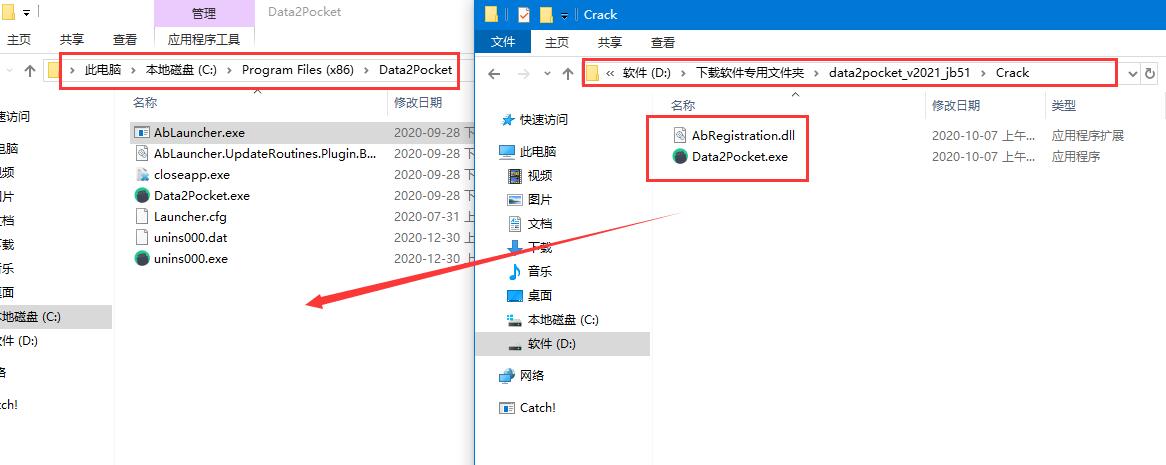 6、將軟件包內(nèi)Crack里的補丁復制到軟件安裝目錄下(默認c:/Program Files(x86)/Data2Pocket)