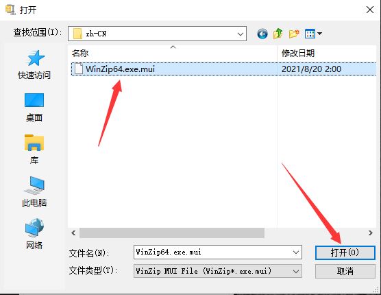 10.選擇winzip64.exe.mui,然后點擊打開,如圖