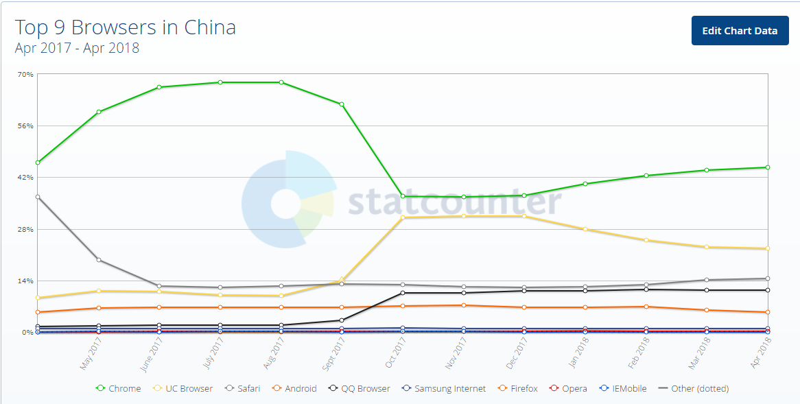 UC、Android內(nèi)置、Chrome、Safari、QQ Browser都是webkit內(nèi)核,從圖上看占了絕大部分的市場份額。